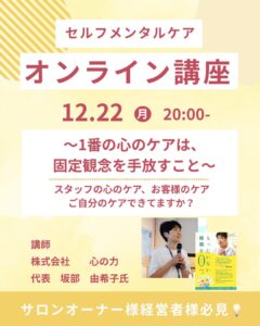 「セルフメンテナンスケア」45分講座のお知らせ新着!!